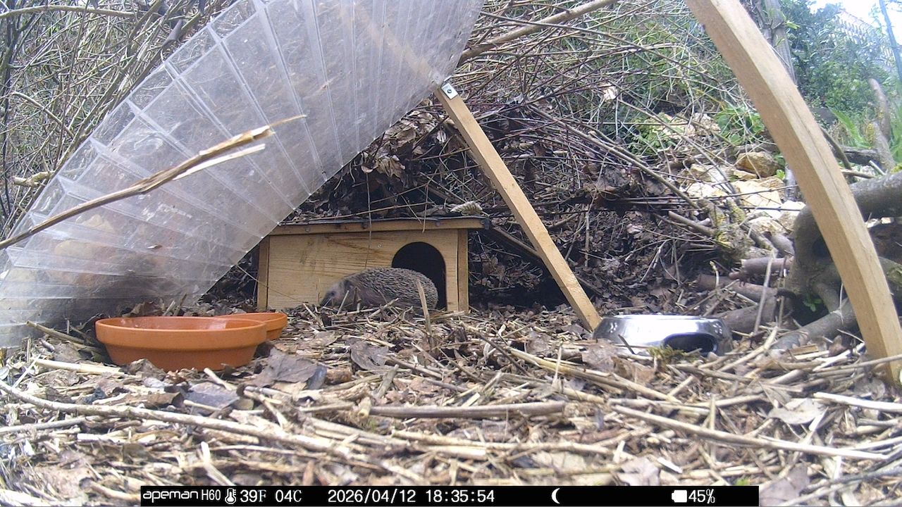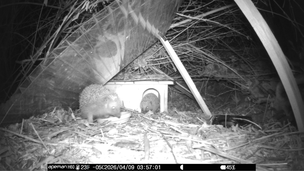In den letzten Märztagen sind die Igel aus ihrem Winterschlaf erwacht. Immer noch gut genährt und offenbar wohlauf durchstreifen sie nachts wieder die Gärten der Werkhof‑Mitarbeitenden. Aktuelle Aufnahmen einer Wildtierkamera aus einem der Gärten zeigen die nächtlichen Besucher in Aktion. Nach ihren Ausflügen in die Umgebung kehren die Igel weiterhin regelmäßig zurück, um in den Igelhäusern tagsüber geschützt zu schlafen.